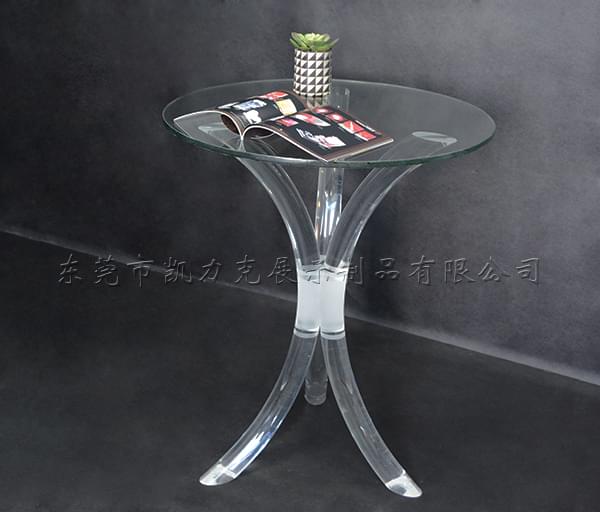 這款有機(jī)玻璃桌子是采用三條透明的棒熱彎成弧形作為支架,然后再加一塊圓形的玻璃桌面組合而成,亞克力材料質(zhì)輕、透明度高、易加工,玻璃材質(zhì)耐刮花,這兩個(gè)材料結(jié)合,讓這個(gè)有機(jī)玻璃桌子,造型簡約時(shí)尚,耐用。