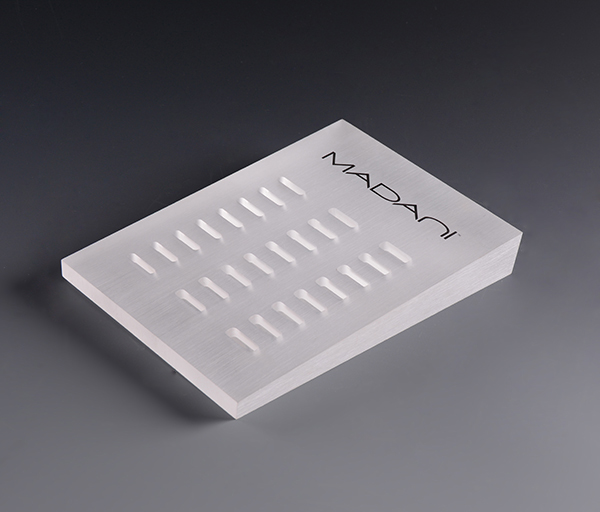 磨砂亞克力戒指座半透明磨砂效果使項(xiàng)鏈看起更加的美麗,并且極具高檔質(zhì)感;開(kāi)有凹槽用來(lái)固定戒指;展板用45°的坡面斜角最佳展示角度,讓戒指在消費(fèi)者眼里一目了然,襯托出項(xiàng)鏈的高雅特性,吸引顧客購(gòu)買。