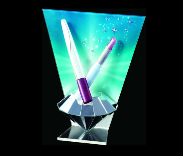 亞克力唇膏展示架是我司為OLAY設計及生產的唇膏展示架,背面底色還是采用套裝的主色調,但底部卻更改為有反射效果的鏡面材料,加上3D的立體鉆石形狀,更能展現(xiàn)唇膏的閃閃效果。