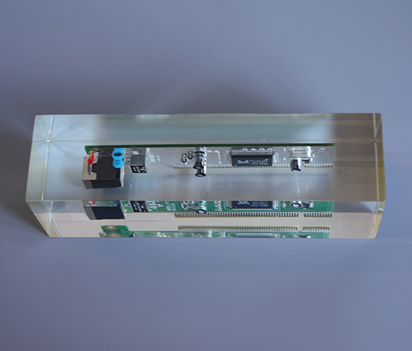 這款水晶膠制品里面內(nèi)嵌一塊電路板,這樣不僅更方便展示電路板,還能防止電路板長(zhǎng)時(shí)間暴露在空氣里引起氧化、生銹等質(zhì)變,水晶膠本身透明度高光滑有質(zhì)感瞬間提高產(chǎn)品檔次,而且水晶膠使用3-5年不變黃,可以說是一款充滿智慧的產(chǎn)品。