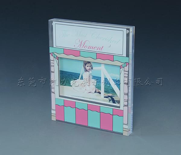 這是一款美國客戶定制的有機(jī)玻璃相框,這款有機(jī)玻璃相框采用一塊10mm的透明有機(jī)玻璃正面印刷圖案中間留一塊透明區(qū)域放照片,背面用一塊2mm的透明板用磁鐵組合而成,整個相框看起來精美高檔。